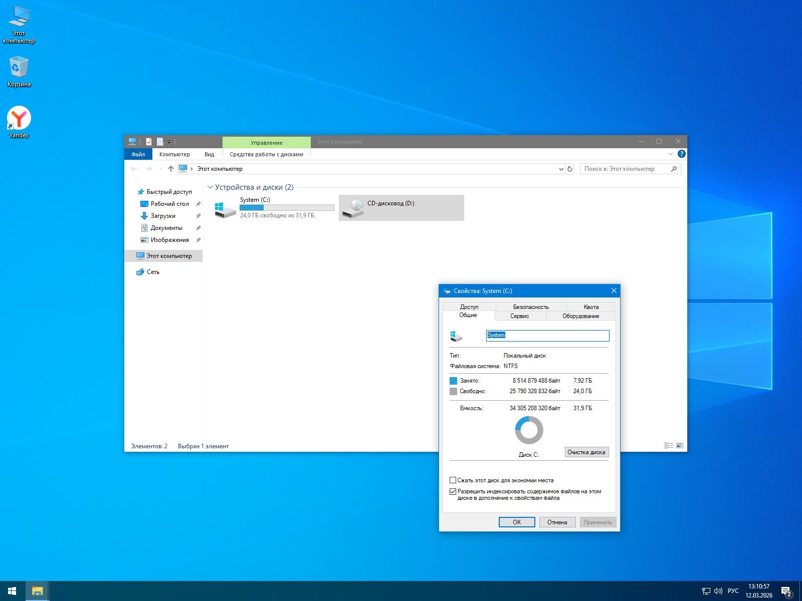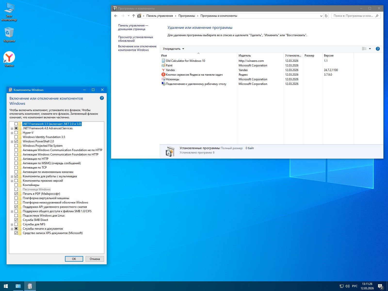 Яндекс Браузер - современный веб-обозреватель, установленный взамен удалённого Edge. Обеспечивает мгновенный доступ к сетевым ресурсам для загрузки необходимого ПО.