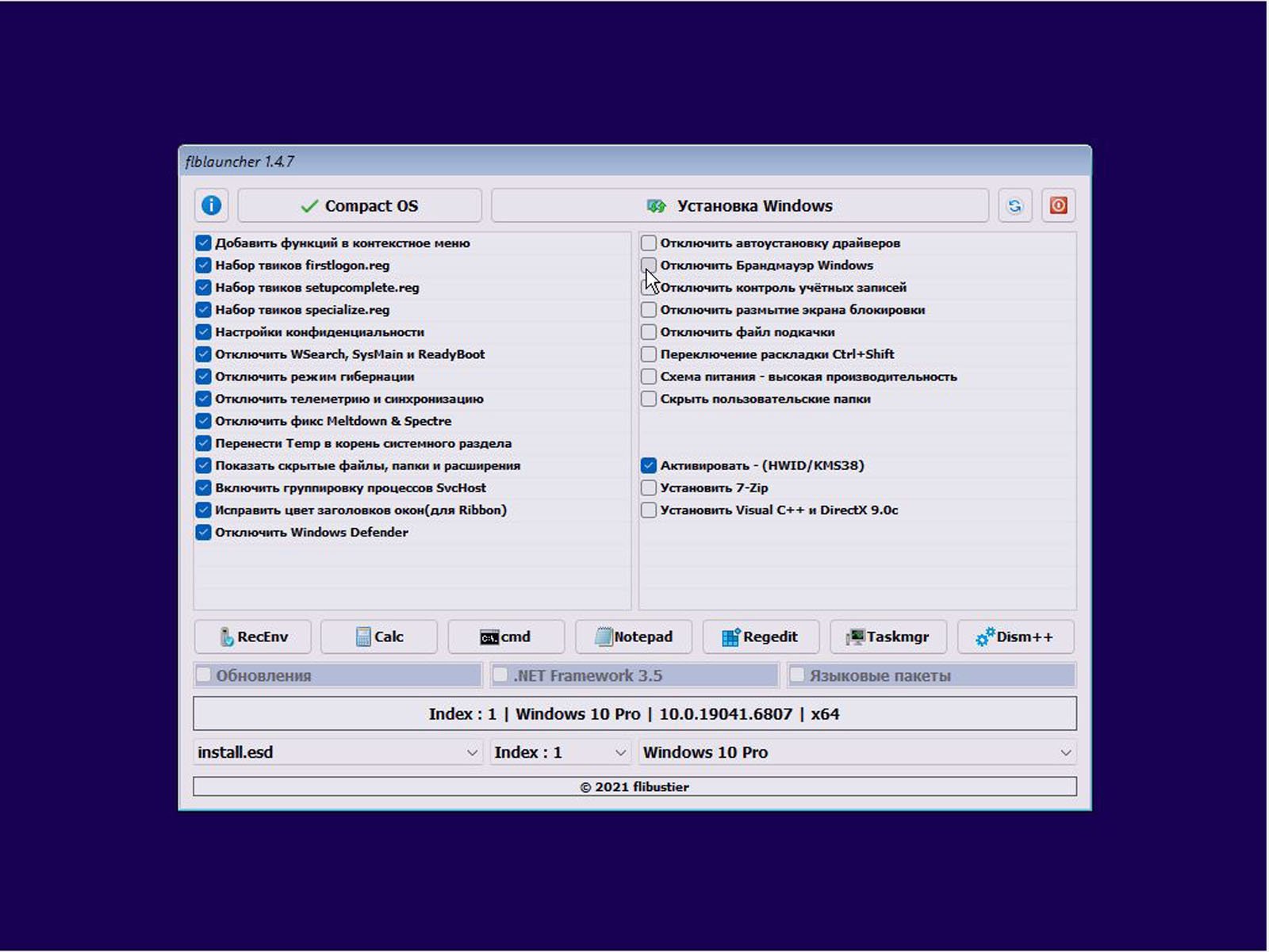 Получить оптимизированную версию можно посредством торрент-протокола либо прямого скачивания. Отличительной чертой русскоязычного PRO-выпуска является встроенная утилита fblauncher версии 1.4.7, автоматически активирующаяся в ходе инсталляции. Данный инструмент предоставляет визуальный интерфейс, где системные параметры регулируются простыми переключателями. Утилита предлагает: отключение принудительных обновлений, автоматическую активацию лицензии, извлечение защитного ПО, внедрение улучшений быстродействия и иные конфигурации. Отпадает потребность в изучении руководств или технических спецификаций - весь функционал централизован в едином управляющем окне.
